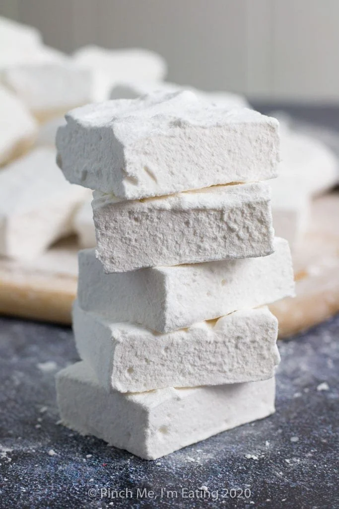 These homemade and healthy marshmallows are perfect eaten by themselves as a treat, added to your fall dessert charcuterie boards, dipped in some chocolate, topping your holiday sweet potatoes, a fancy addition to your hot cocoa or latte, and the only option for those delicious campfire s’mores.